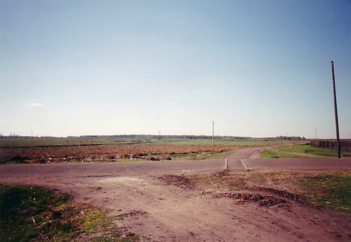 Иду по насыпи до брикетного завода. Поле, пересечение с автодорогой Киев — Ковель, сады, заброшенные торфомассивы, которые местами дымятся...
