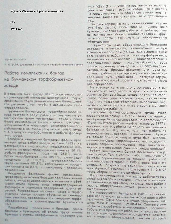из журнала «Торфяная Промышленность», 1984 год (часть 1).