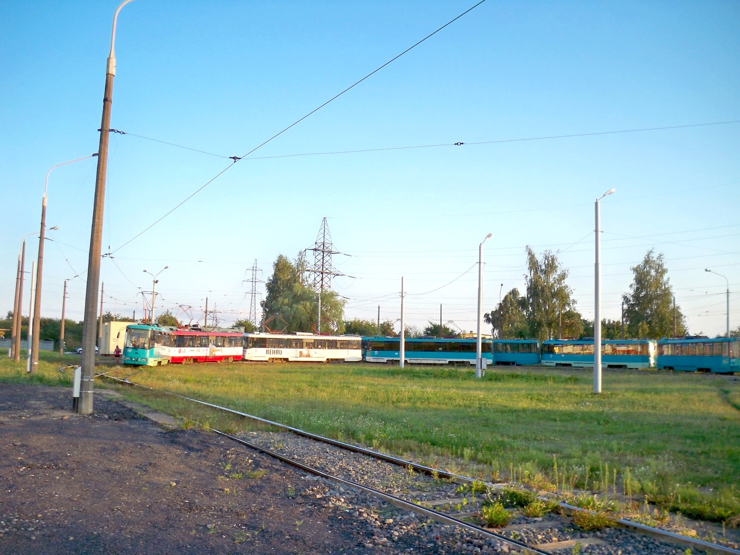 Вагоны у конечной станции «Серебрянка». Вид на север, в сторону центра города.