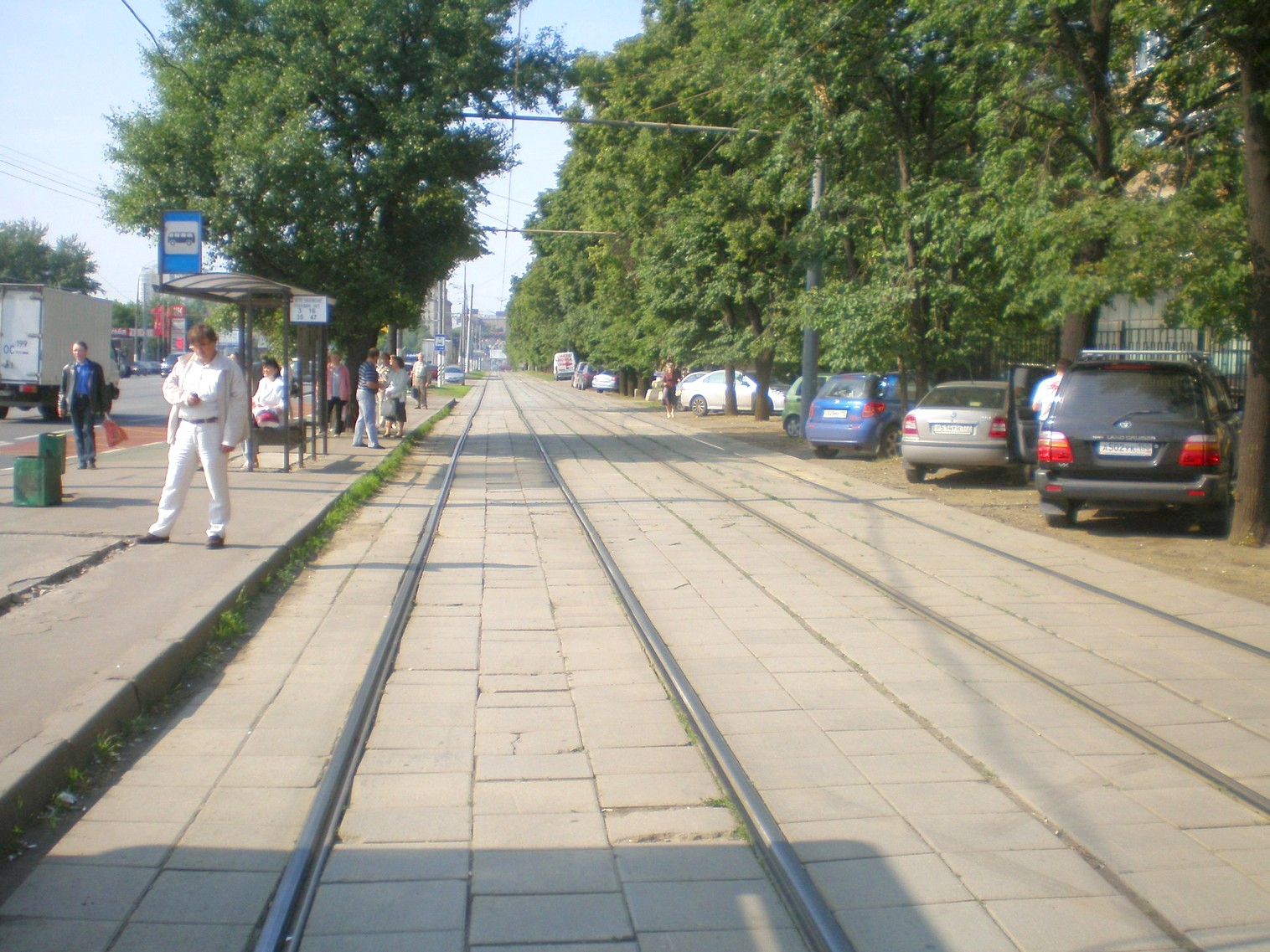 Линия на Варшавском шоссе, у остановки «метро «Нагатинская». Вид из той же точки на север.