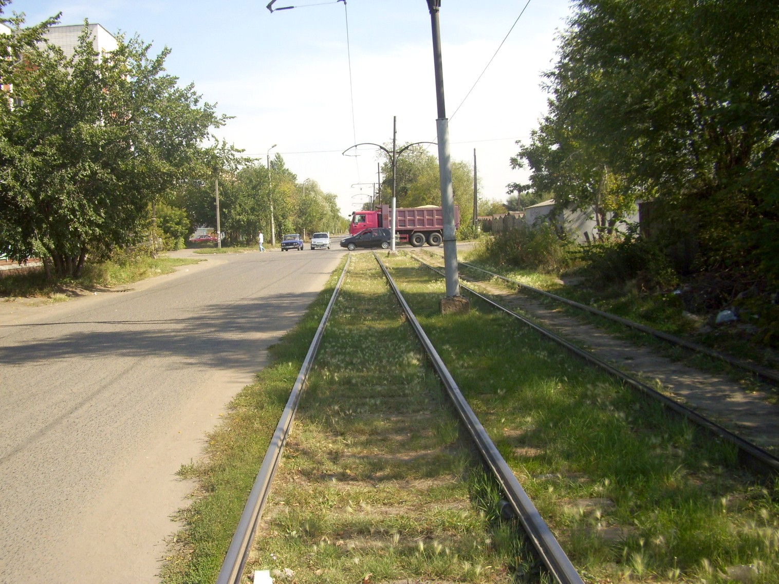 Вид из той же точки в противоположную сторону. Развилка у остановки «9-я линия».