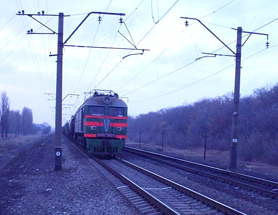 Электровоз ВЛ8-905 приближается к остановочному пункту 235 километр. Вид на запад, в направлении станции Нижнеднепровск-Узел.