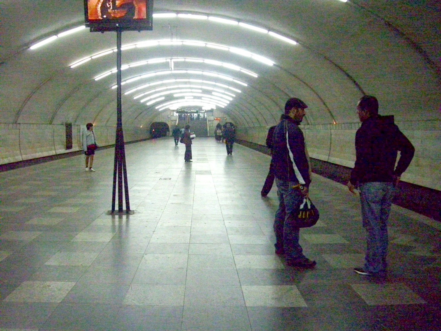 Центральный зал станции. В центре — информатор (в данный момент сообщает о том,