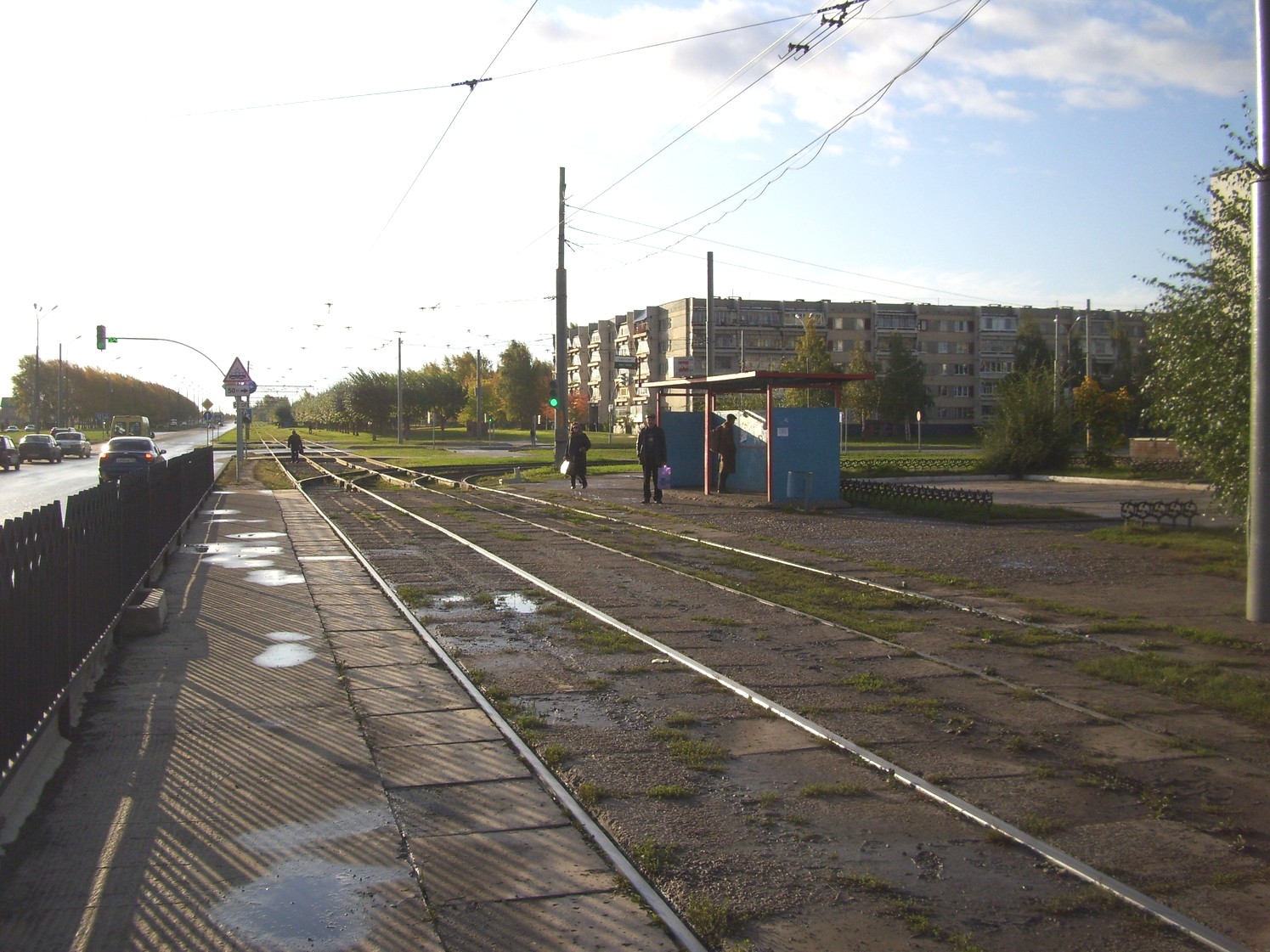 Узел у остановки «ГИБДД». Прибывает вагон на Сидоровку.