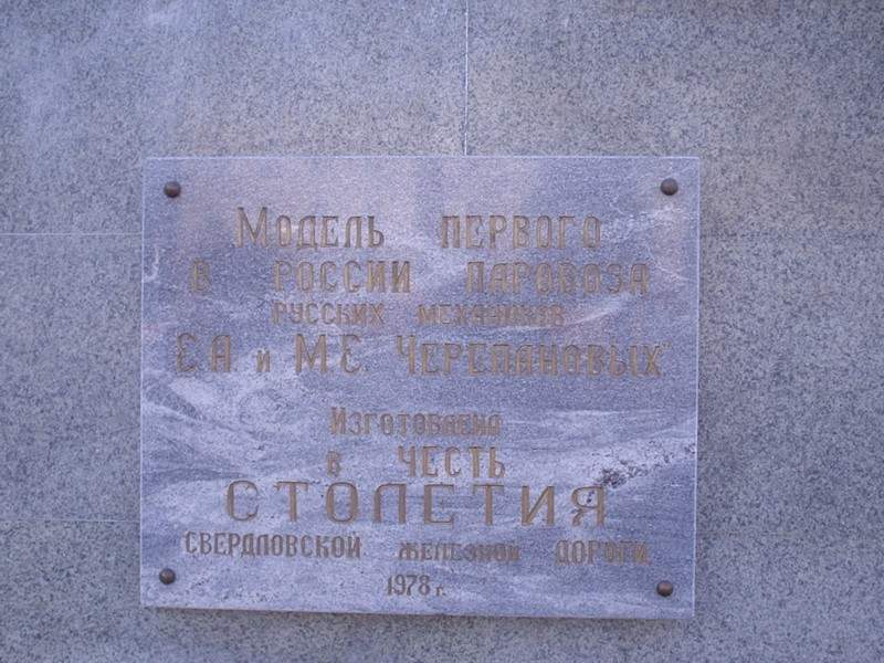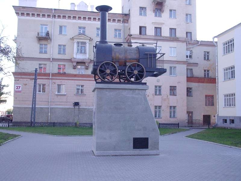 Памятник-макет первого российского паровоза, созданного Е. А. и М. Е. Черепановыми,