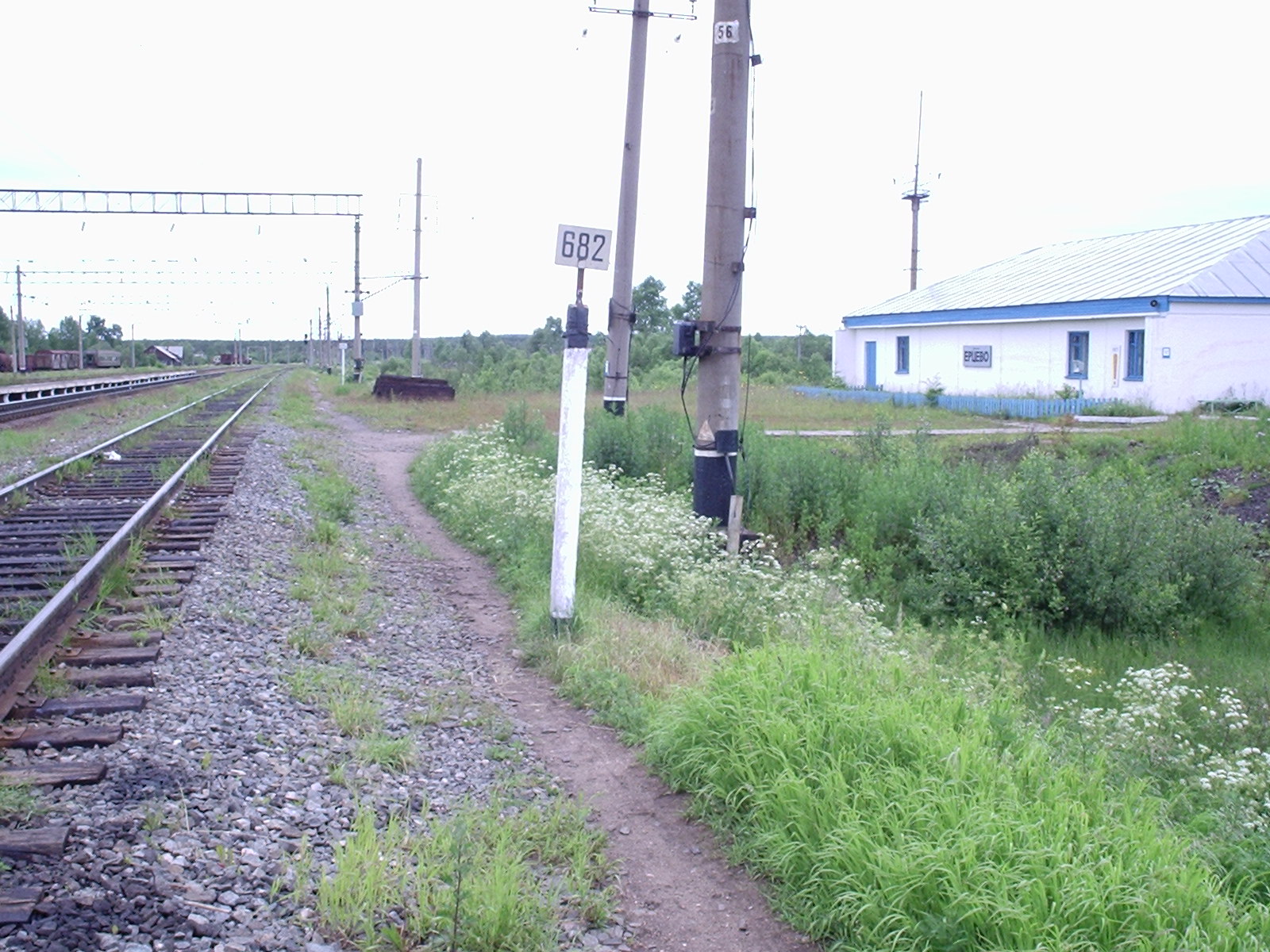 Километровый знак на станции Ерцево («РЖД») - конец 682 километра, начало 683 километра.