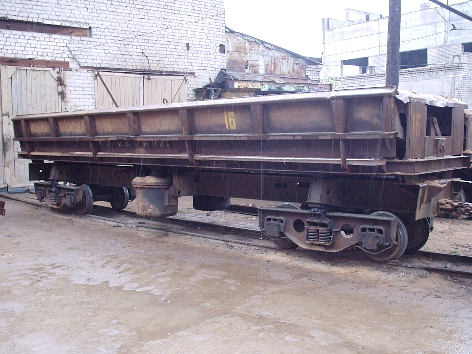 Вагон-самосвал (думпкар) с инвентарным номером 16 вблизи депо.