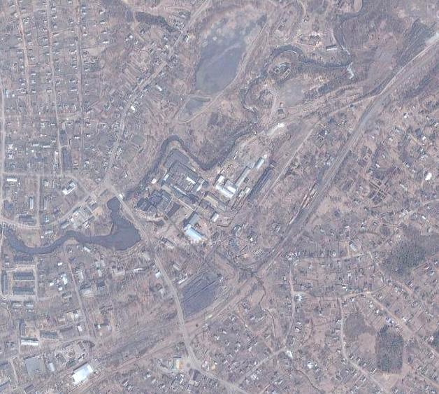 Окуловская целлюлозно-бумажная фабрика на спутниковом снимке (источник — «Google Maps»,