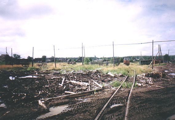 Впереди — крайняя западная точка узкоколейной железной дороги. В тупике стоит
