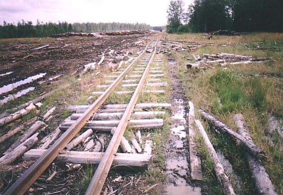 Путь узкой колеи на нижнем складе (к северу от основных сооружений). Вид в западном