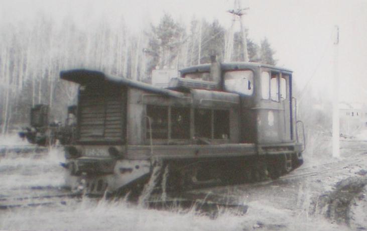 Неработающий тепловоз ТУ4-2990 на узкоколейной железной дороге в Аяти. 1991 год.