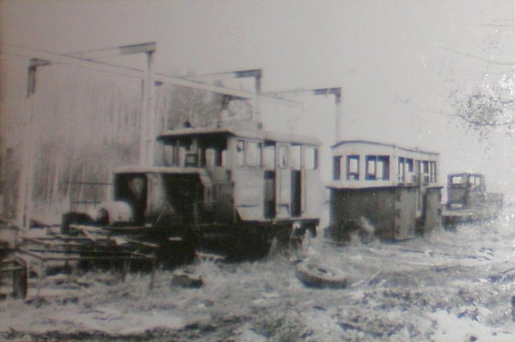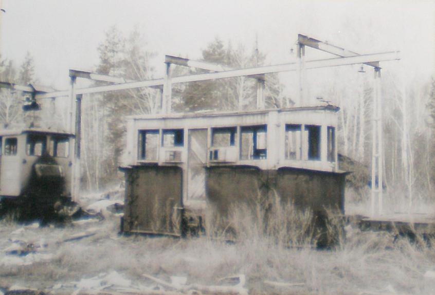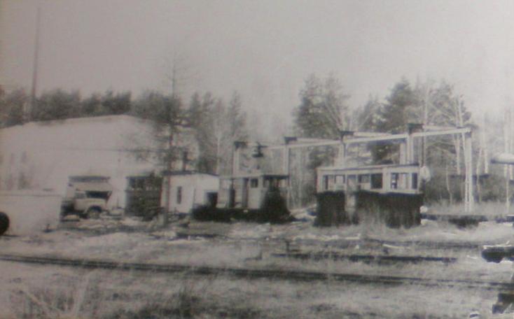 Вагон ТСВ и платформы на узкоколейной железной дороге в Аяти. 1991 год.