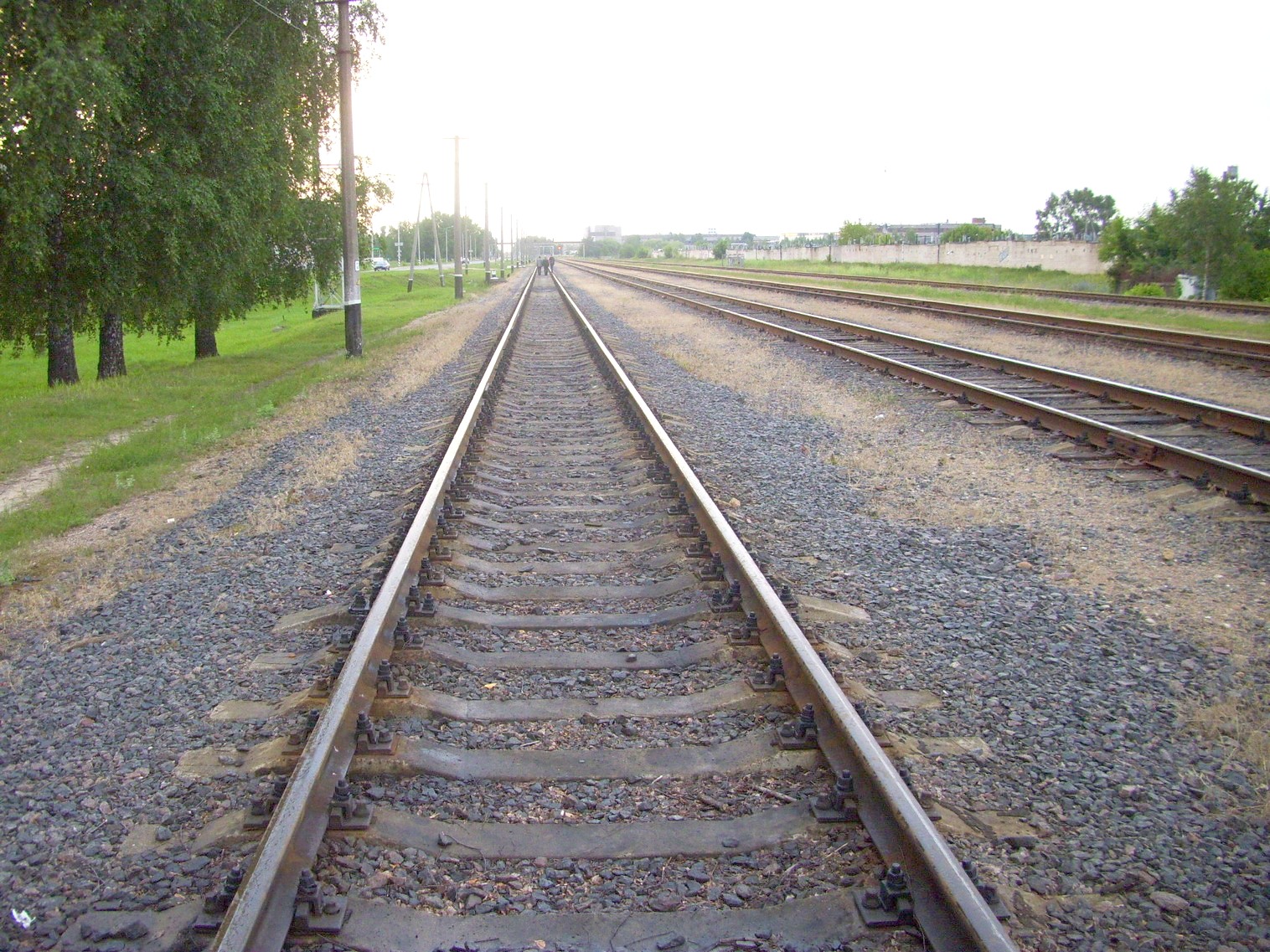 Пути станции Белоозёрск. Вид с переходного моста в северном направлении, в сторону Бронной Горы.