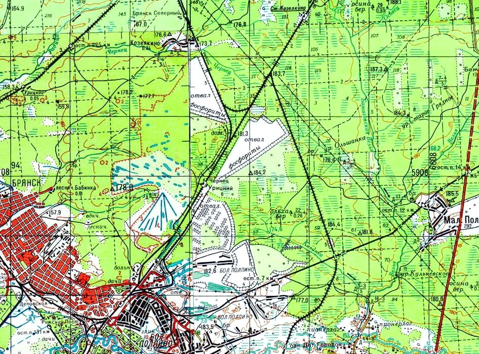 УЗКОКОЛЕЙНАЯ ЖЕЛЕЗНАЯ ДОРОГА БРЯНСКОГО ФОСФОРИТНОГО ЗАВОДА ТОПОГРАФИЧЕСКИЕ КАРТЫ