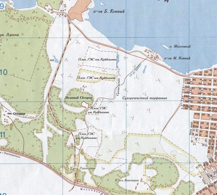 Узкоколейная железная дорога на плане города Свердловска, изданном в 1947 году.