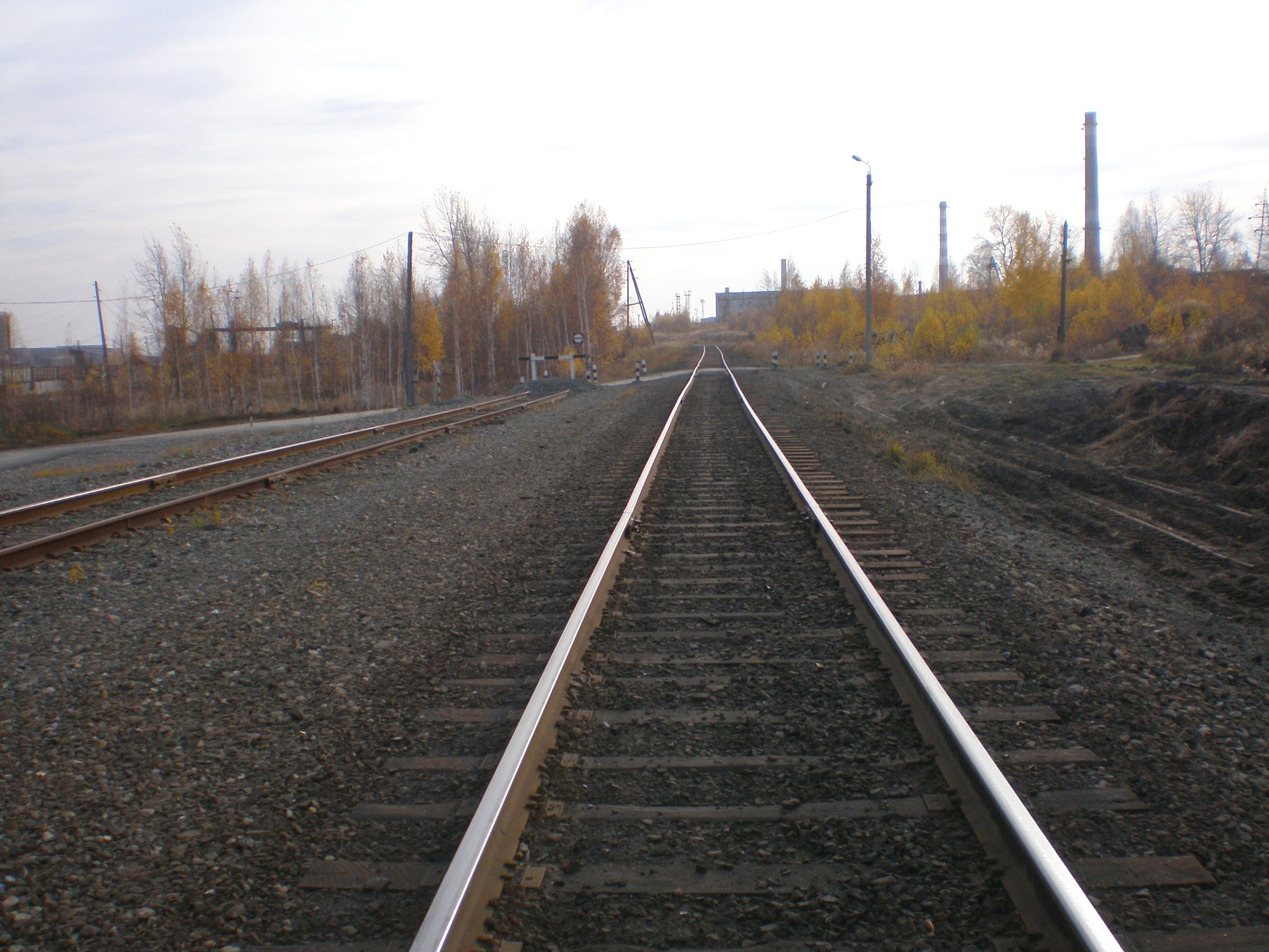 Пути на огороженной территории Кировградского медеплавильного комбината. Вид из-за забора в юго-западном направлении.