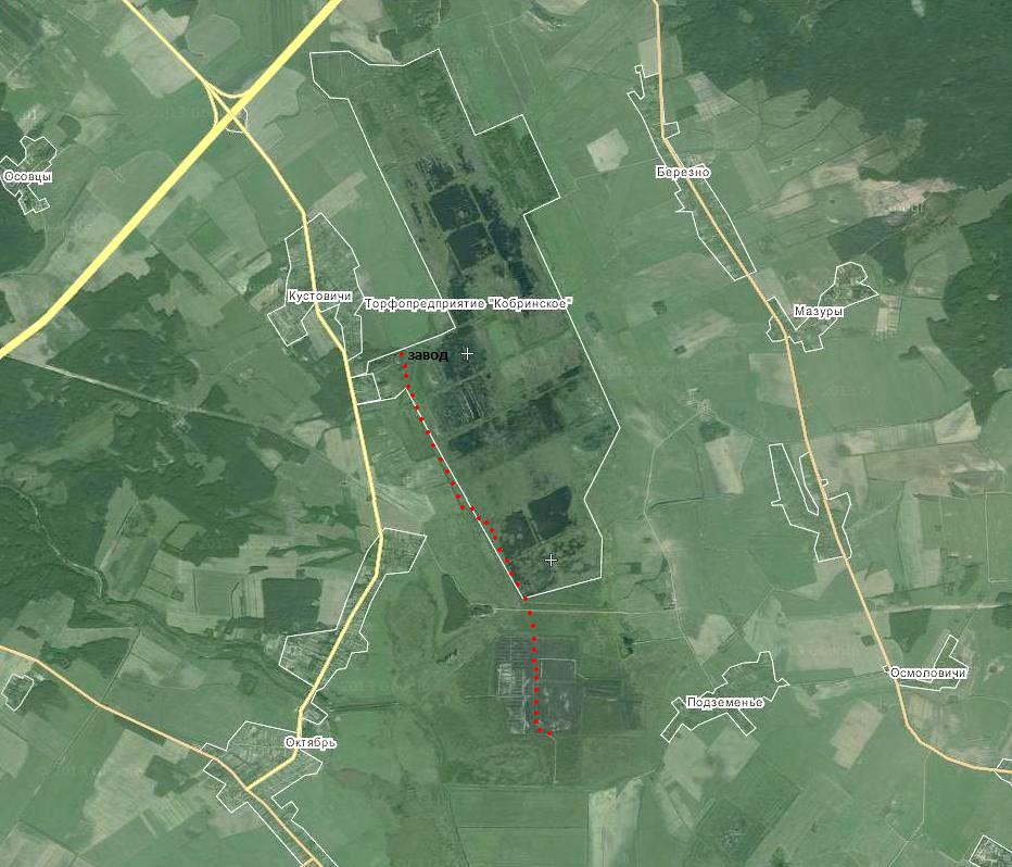 Начальным пунктом узкоколейной железной дороги Кобринского торфопредприятия является посёлок