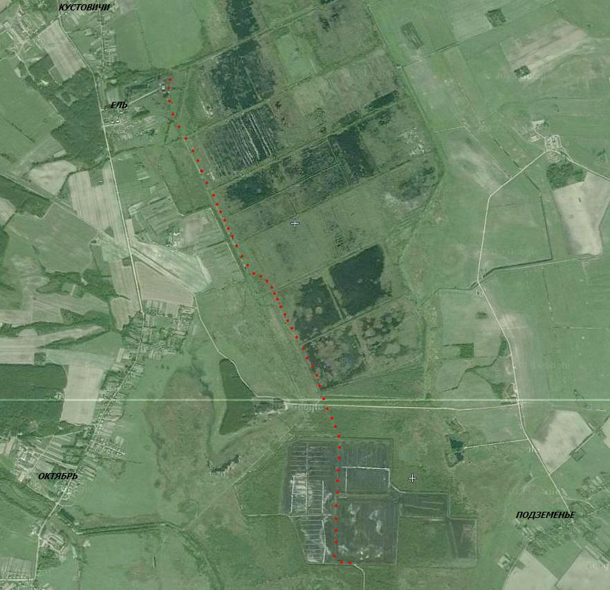 Показана территория главной станции в посёлке Ель и её окрестности.