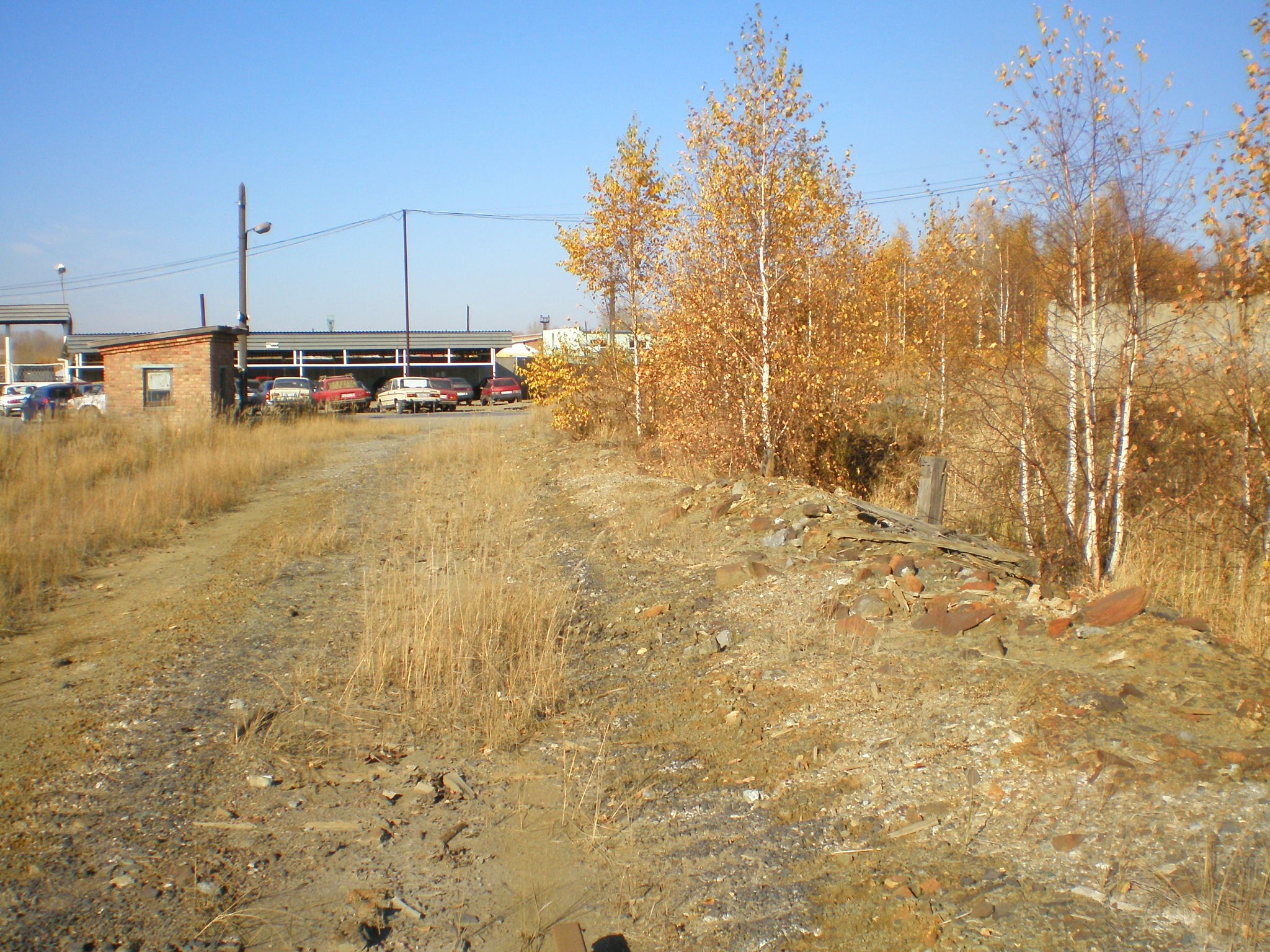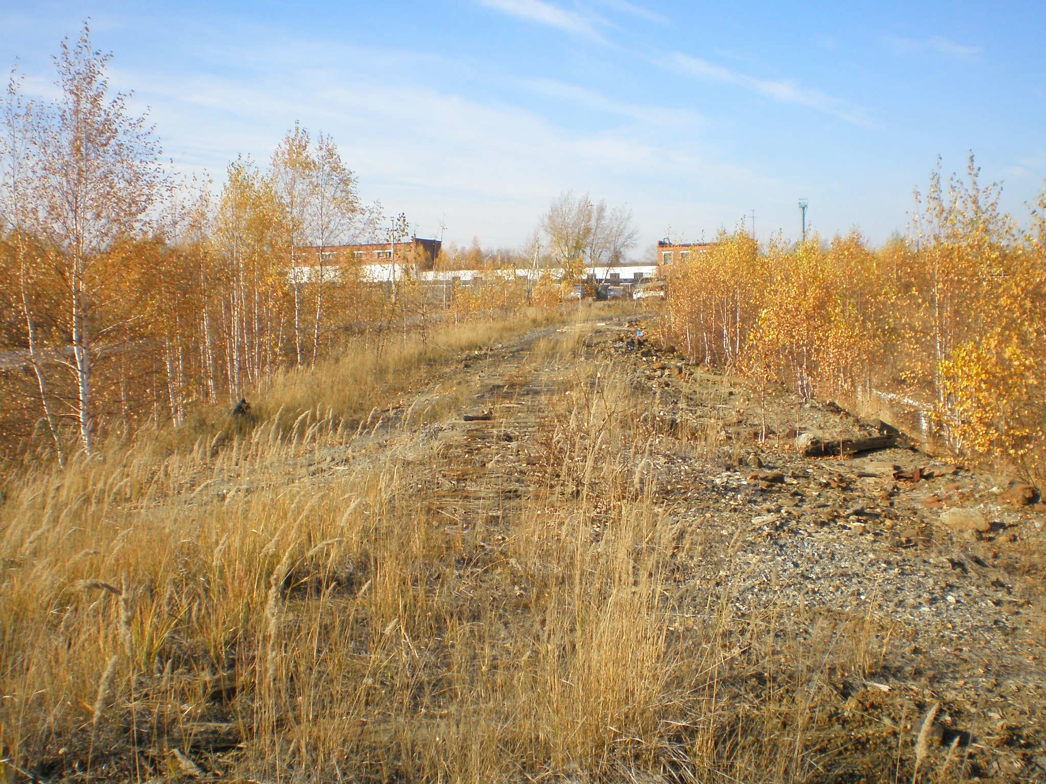 Разобранная линия узкоколейной железной дороги вблизи территории комбината.
