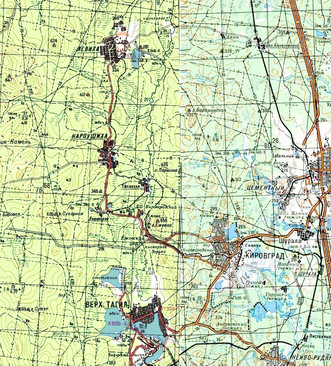 Узкоколейная железная дорога на топографической карте масштаба 1:500 000,