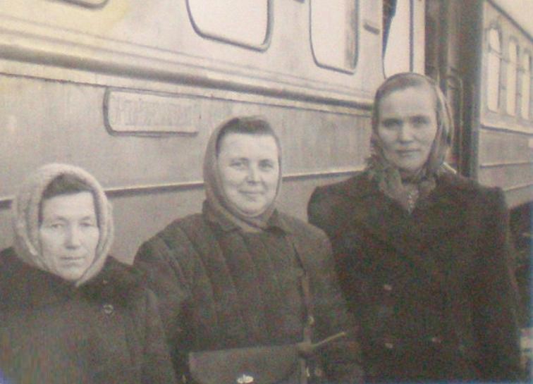 Проводники пассажирских вагонов: Н. Овечкина, Р. Позднякова, Будникова.