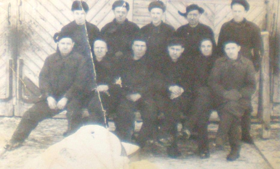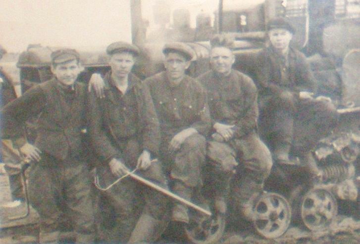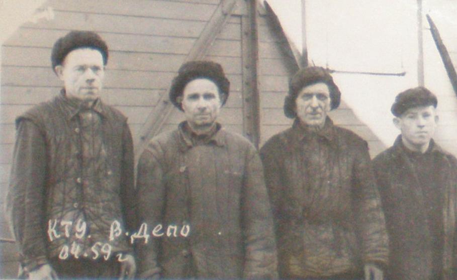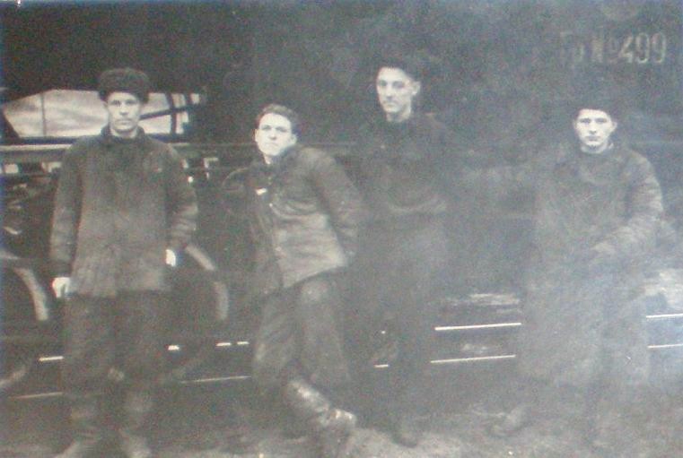 Слева направо: Краев П.У. — слесарь, Шиляев А.Д. — слесарь, Горнуко... В.А. — бригадир, Ведерников — слесарь.