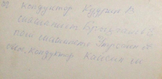 Паровоз №476. Машинист Кузнецов А.Ф., помощник машиниста Утробин А., кондуктор Кудрин.