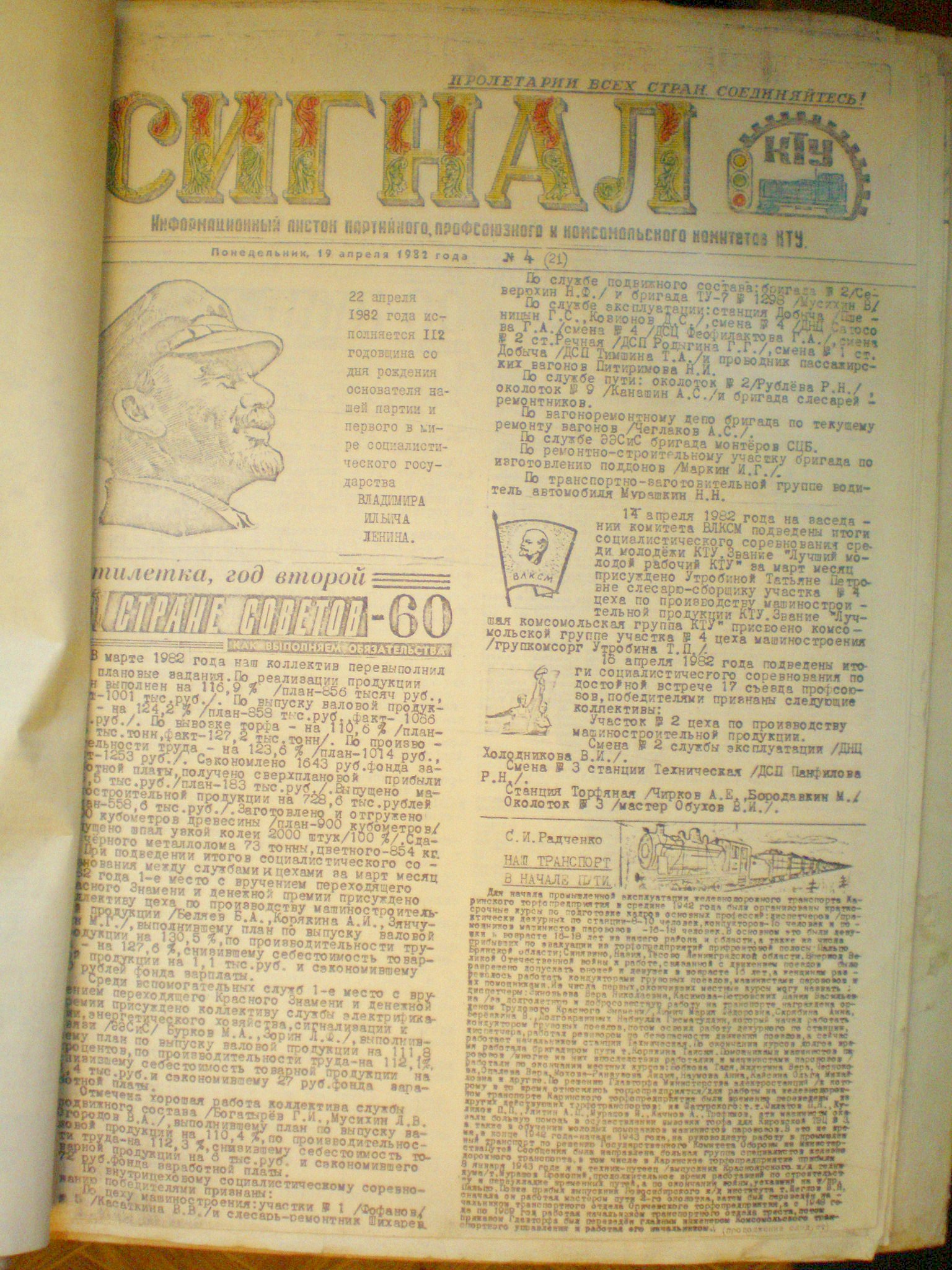 Газета Каринского транспортного управления «Сигнал», №4 (21), 1982 год.