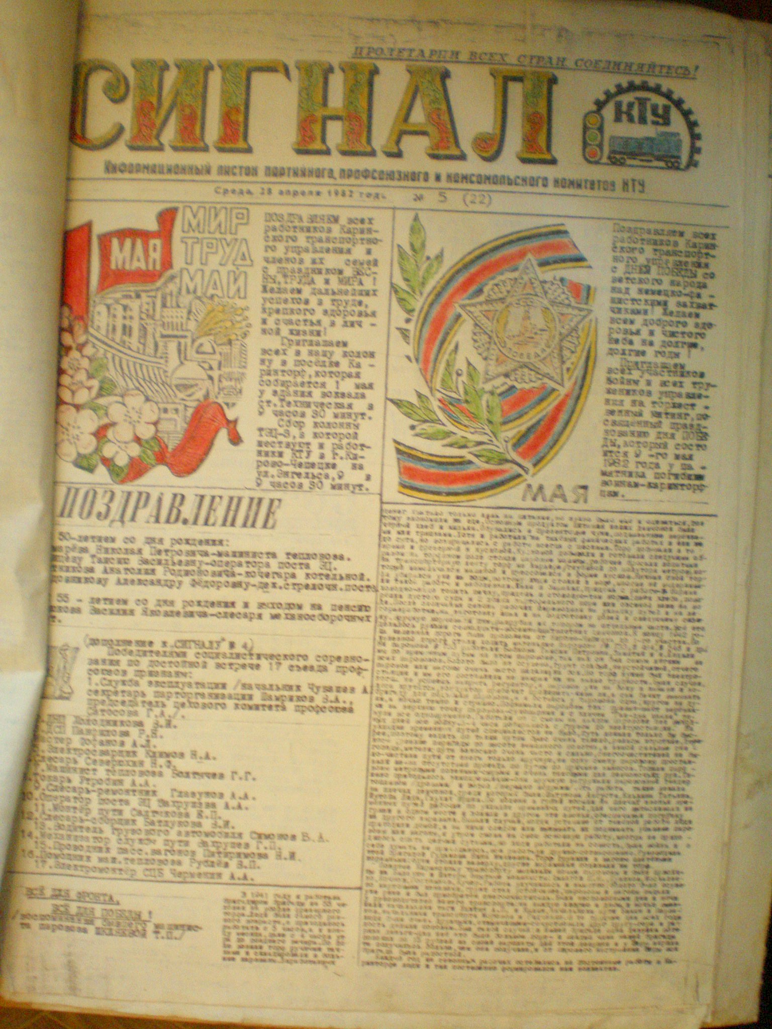 Газета Каринского транспортного управления «Сигнал», №5 (22), 1982 год.