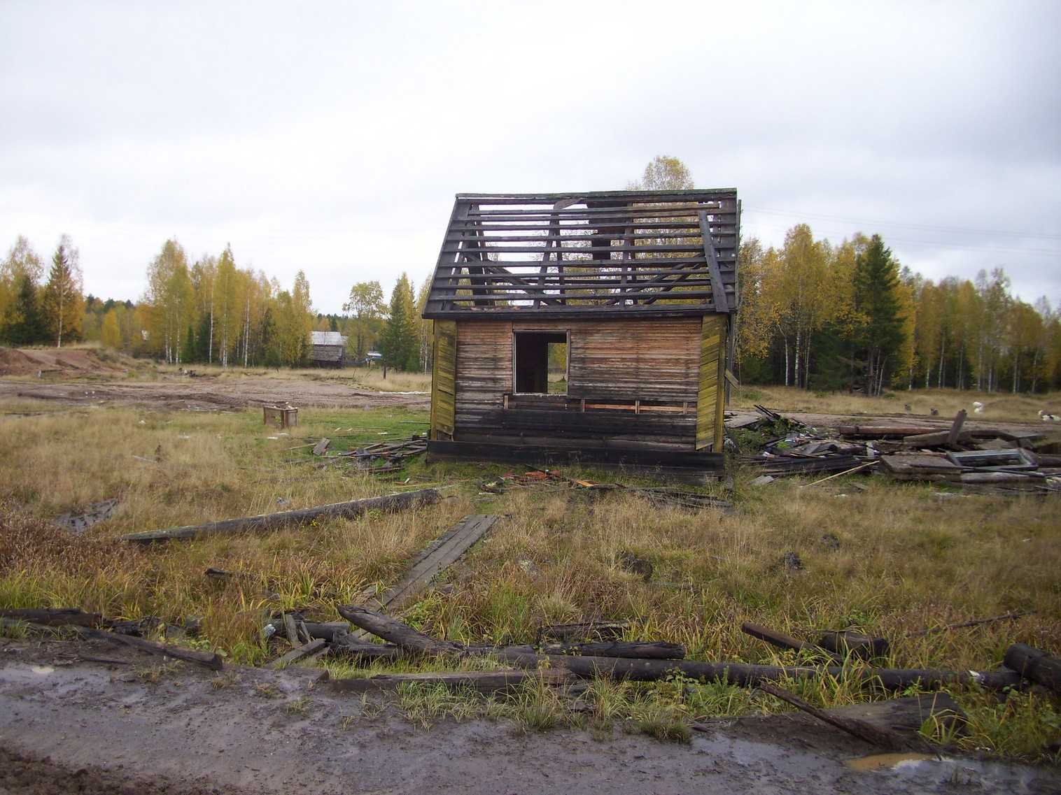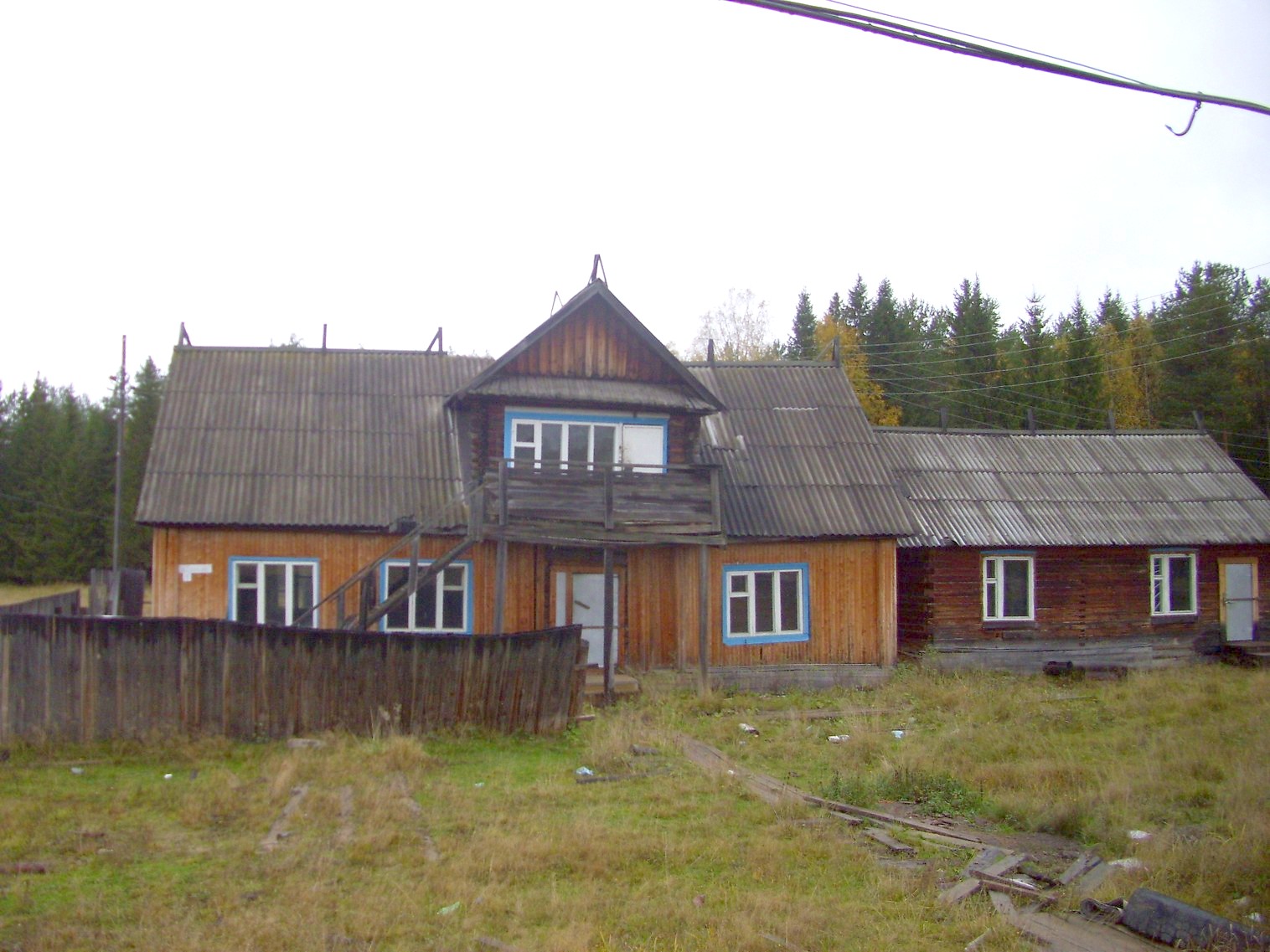 Бывшее депо (?) вблизи разобранной главной станции узкоколейной железной дороги в посёлке Кобра.