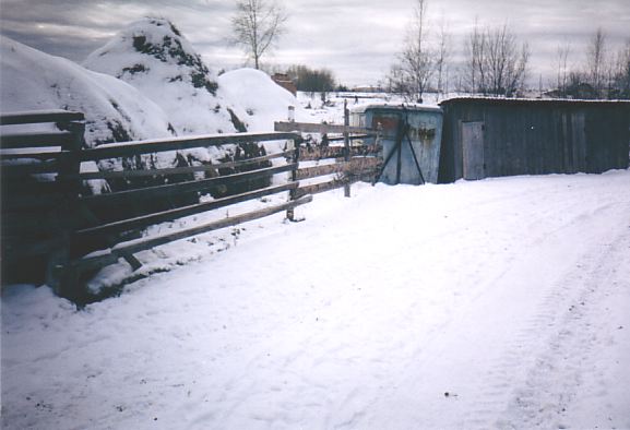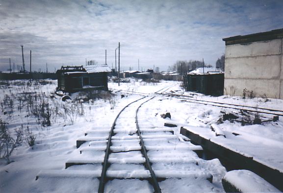 Справа — подъездной путь широкой колеи (на участке между двумя территориями колонии),