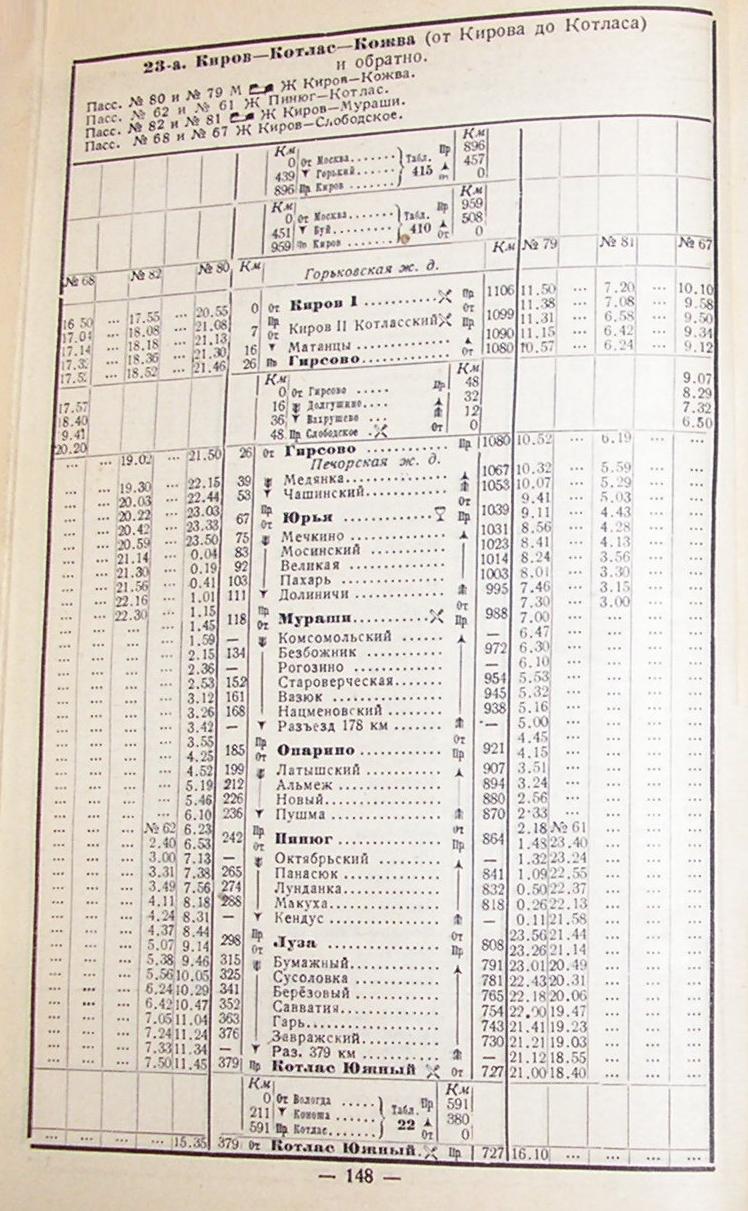 В сборниках расписаний движения пассажирских поездов от 1917 года и от 1928 года линия Гирсово — Слободское отсутствует. Согласно «Официальному указателю пассажирских сообщений» на лето 1948 года, была в ходу одна пара поездов сообщением Киров — Слободское.