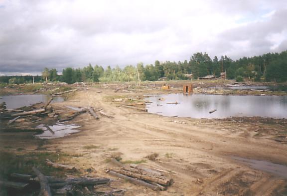 Участок разобранной Красноборской узкоколейной железной дороги, пролегающий вдоль берега