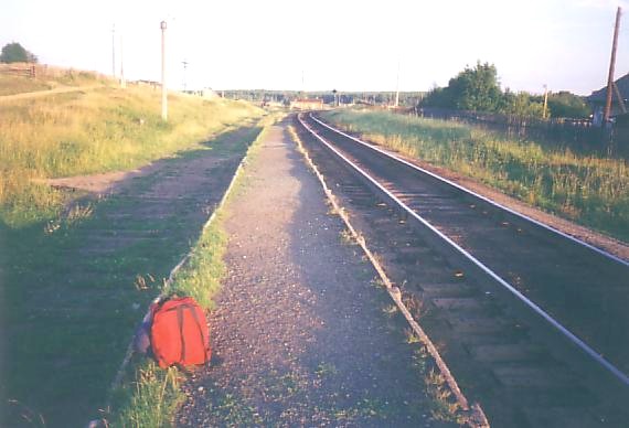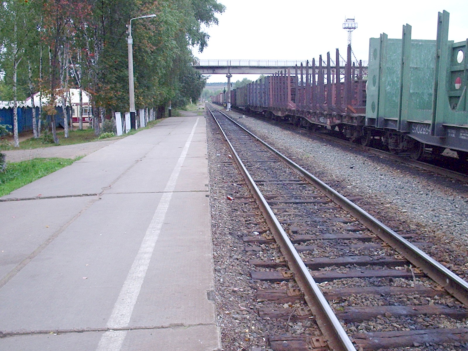 Остановочный пункт Пушма (233 км). Вид в сторону Кирова. Слева от платформы —