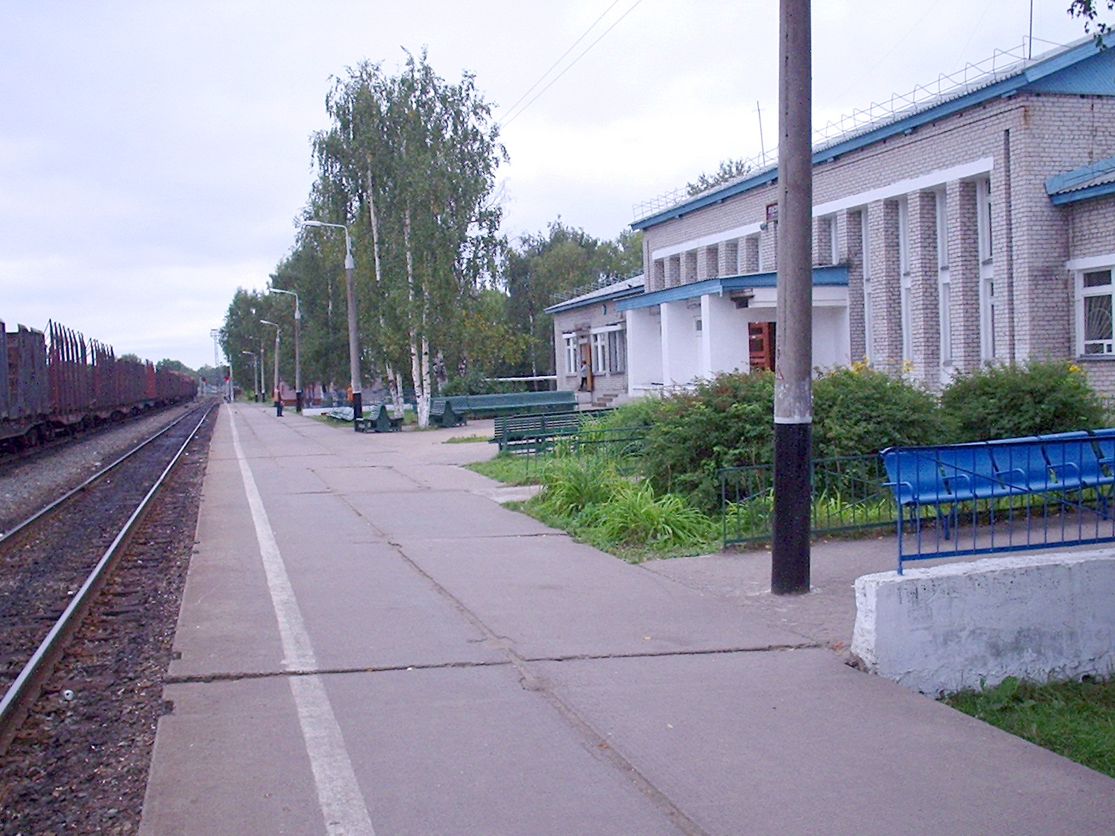 Станция Луза. Вид из той же точки в противоположном направлении. Справа — здание вокзала.