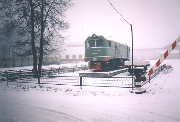 Тепловоз ТУ2-169 на постаменте. Вид со стороны депо.