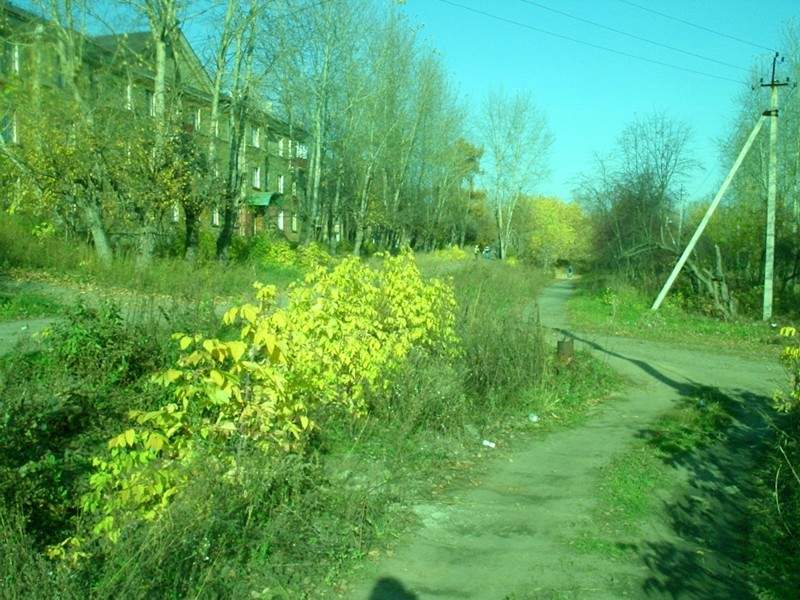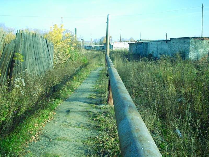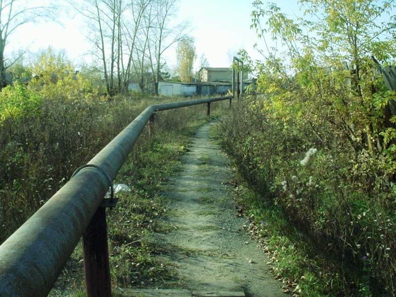 Разрушенный путепровод над городской улицей. Здесь линия Алапаевской узкоколейной железной дороги вступала на территорию Алапаевского металлургического завода. Вид в сторону Алапаевского металлургического завода.