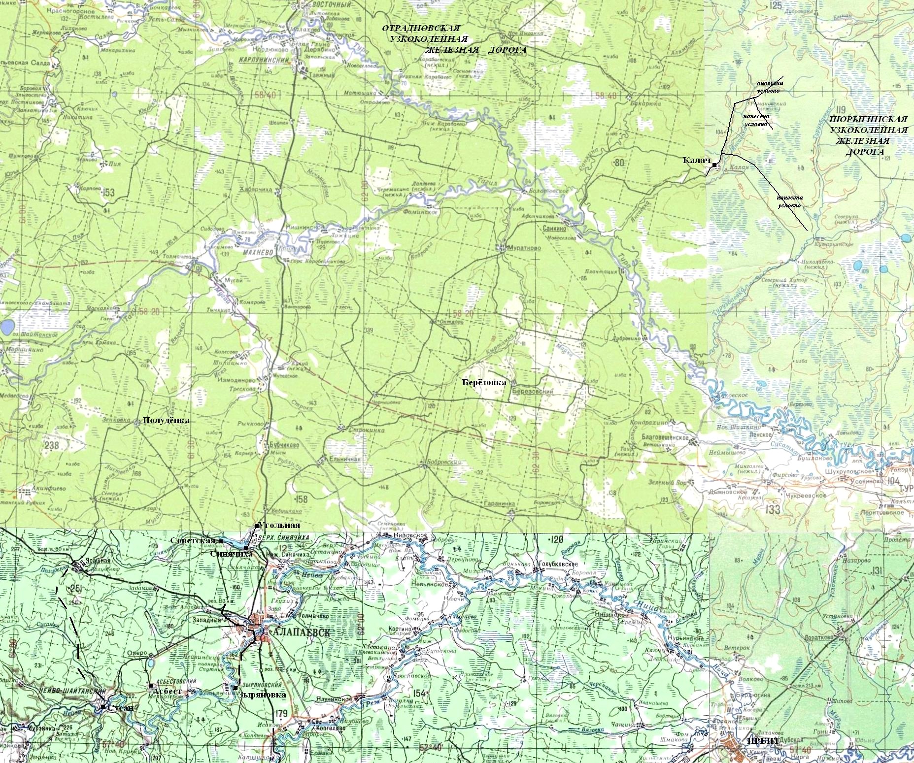 Узкоколейная железная дорога на топографической карте Свердловской области для охотников. Это — единственная известная автору карта,
