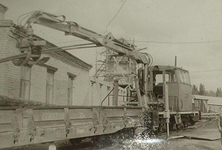Тепловоз-дрезина ТУ6Д (?) с гидравлическим краном производства