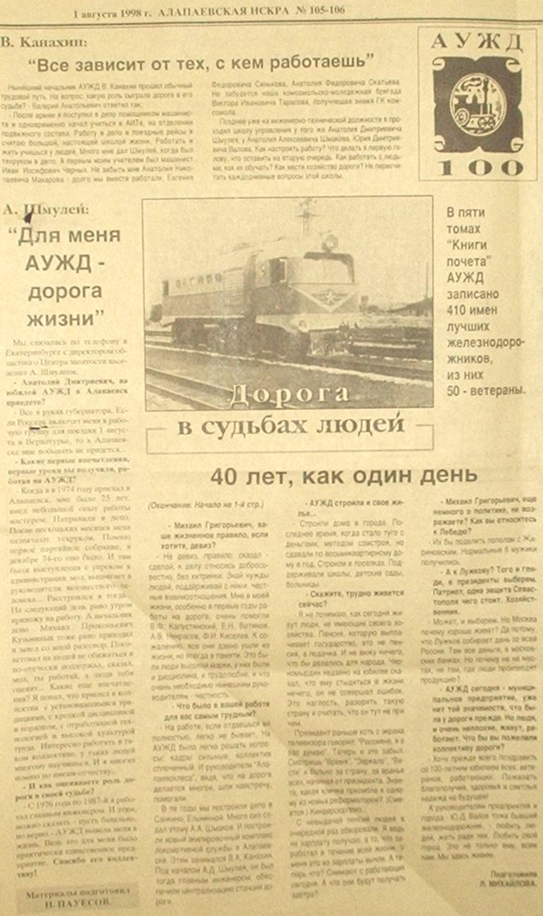 «Дорога в судьбах людей» («Алапаевская Искра», 01.08.1998)