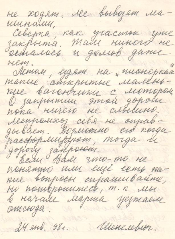 в различные населённые пункты, расположенные на малоизвестных железных дорогах, в том числе узкоколейных. В те времена, когда Всемирная Сеть ещё не получила широкого распространения, это был единственный доступный способ получить информацию о состоянии железных дорог, не выезжая на них.