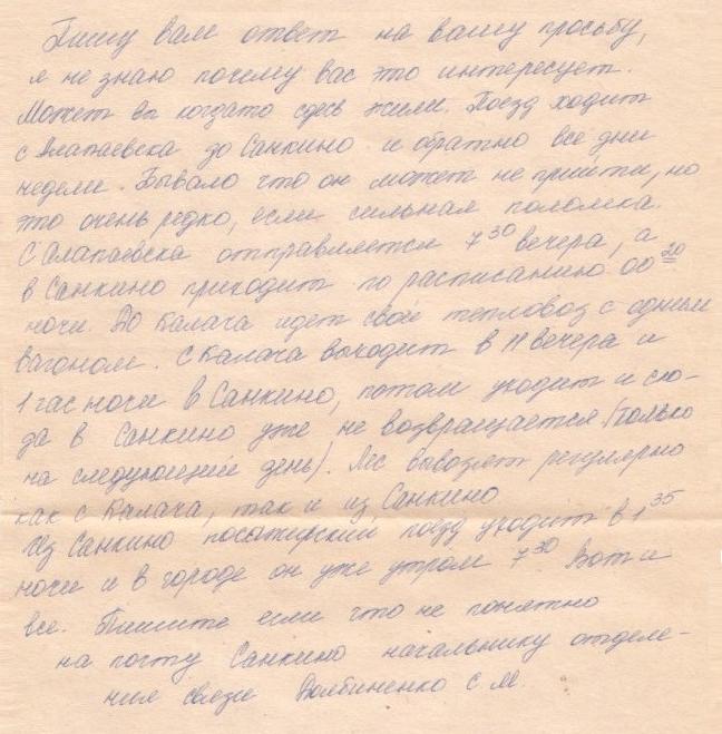 Выражаю благодарность всем, кто ответил на эти письма и внёс тем самым свой посильный вклад в дело изучения и сохранения истории отечественных железных дорог!