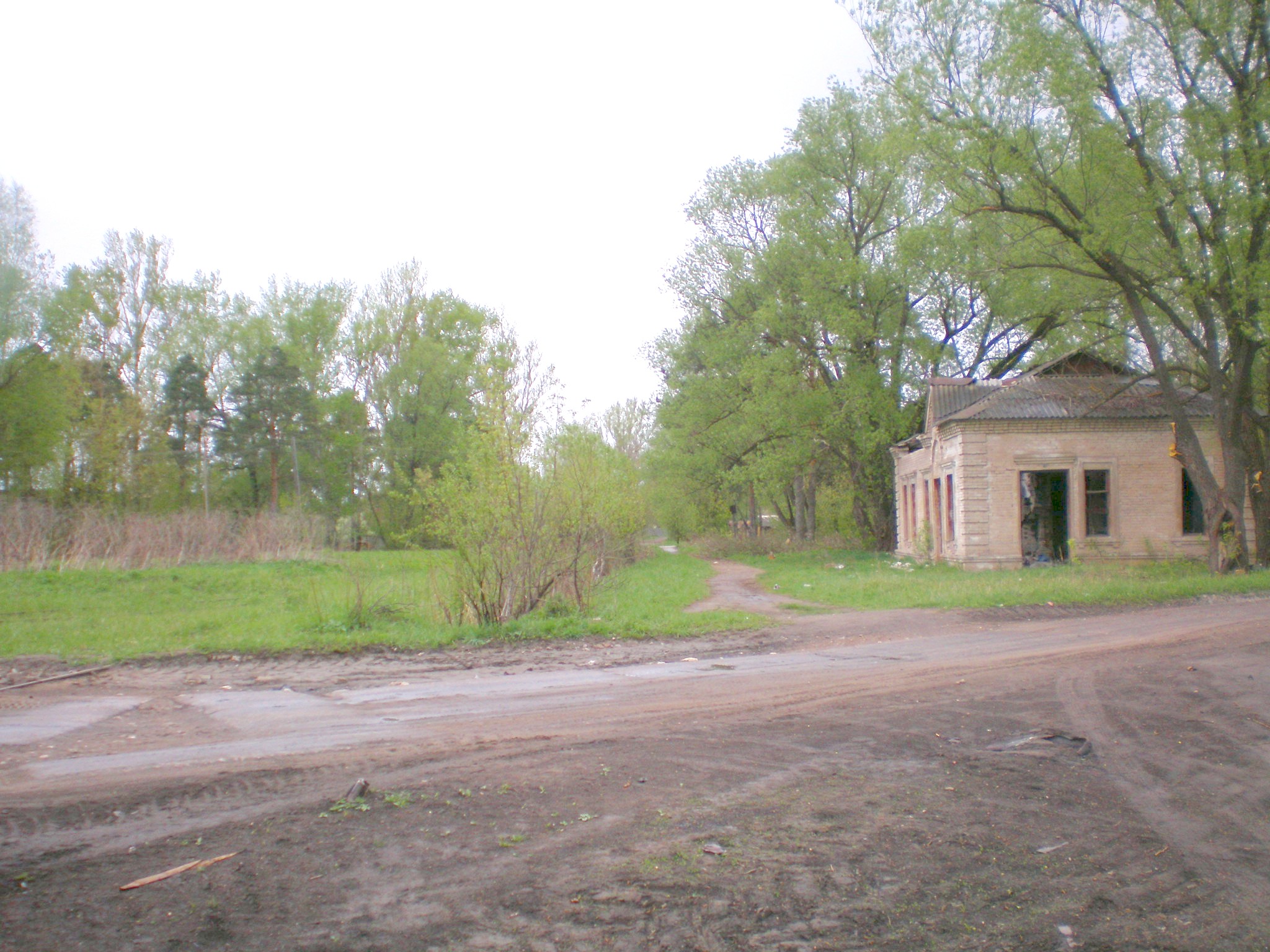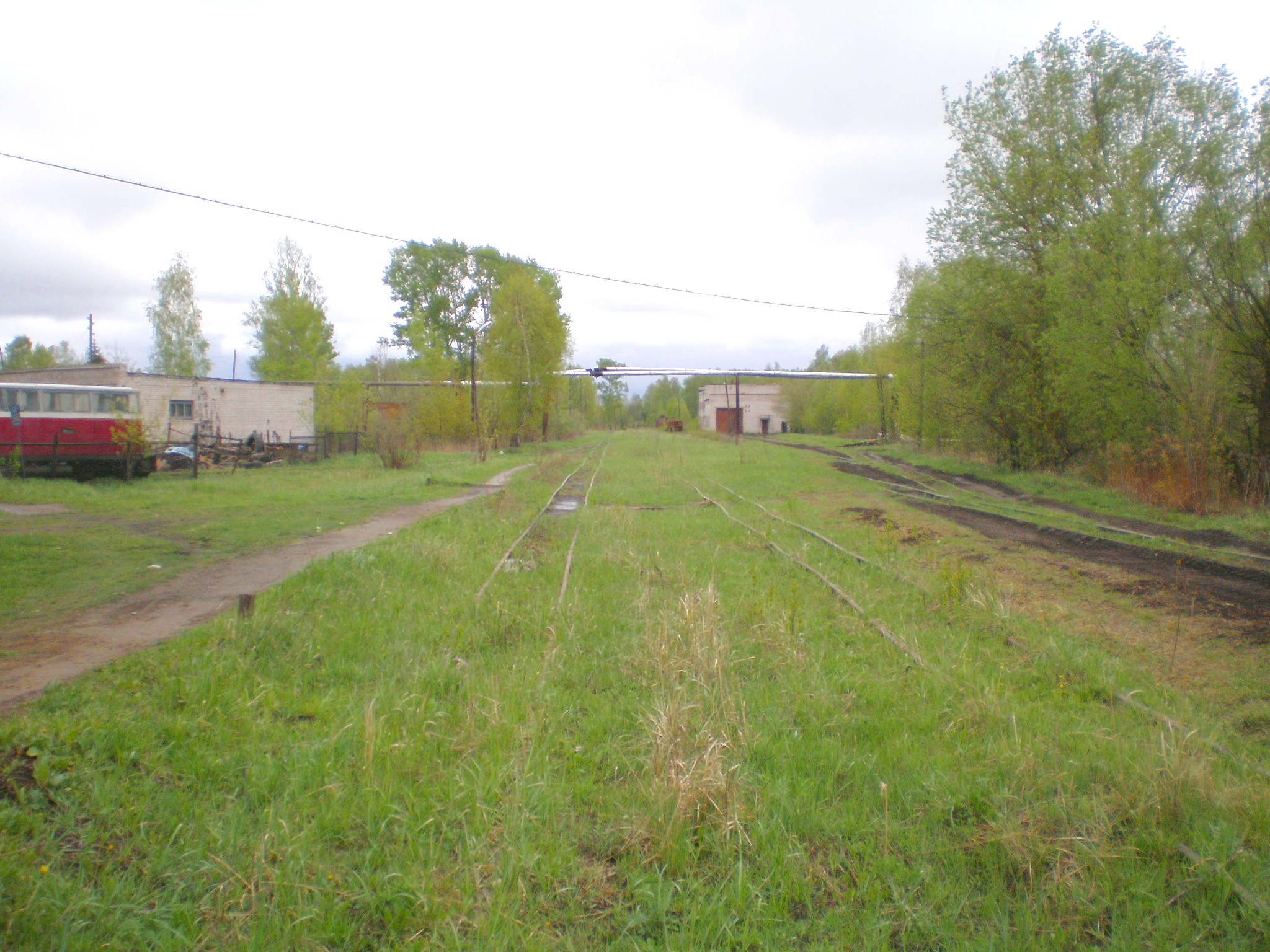 Станция Перегрузочная. Вид от бывшего вокзала в сторону бывшей диспетчерской. Слева — территория депо.