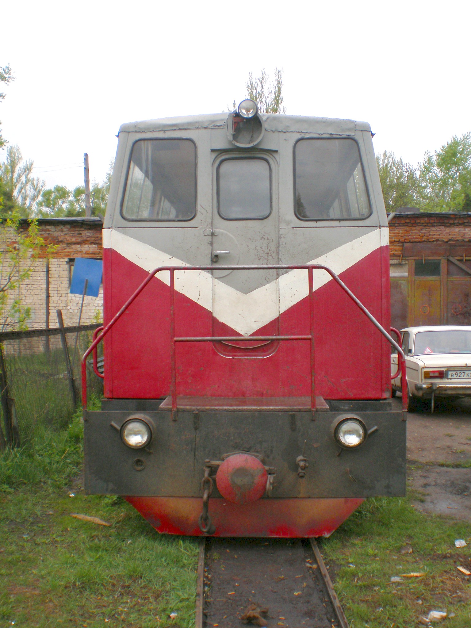 Тепловоз-автомотриса ТУ6П-0016, готовящийся к отправлению на Восточный 1, вблизи депо на станции Перегрузочная.