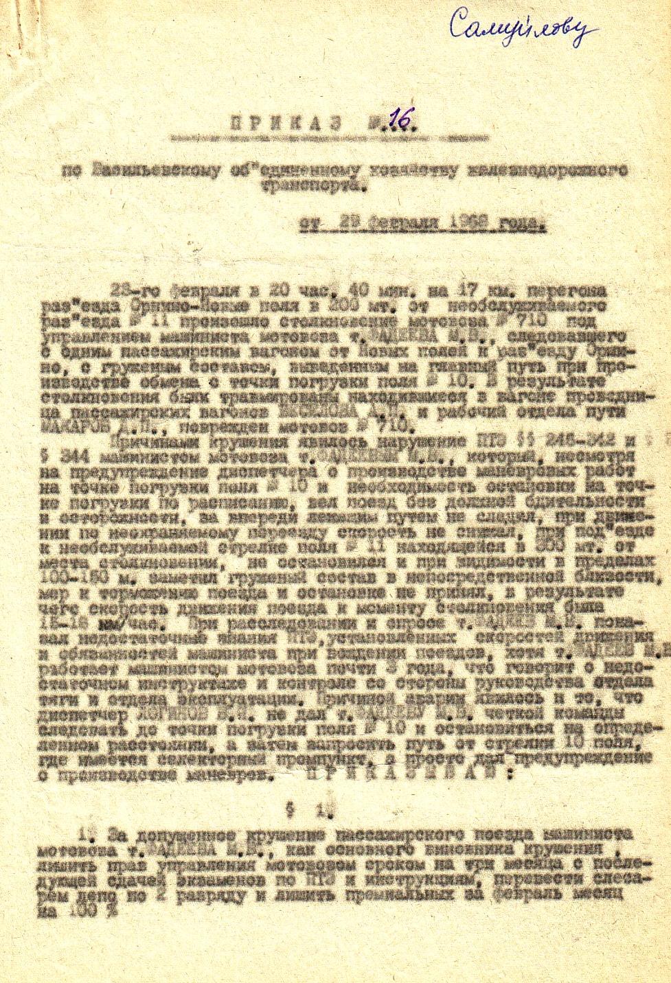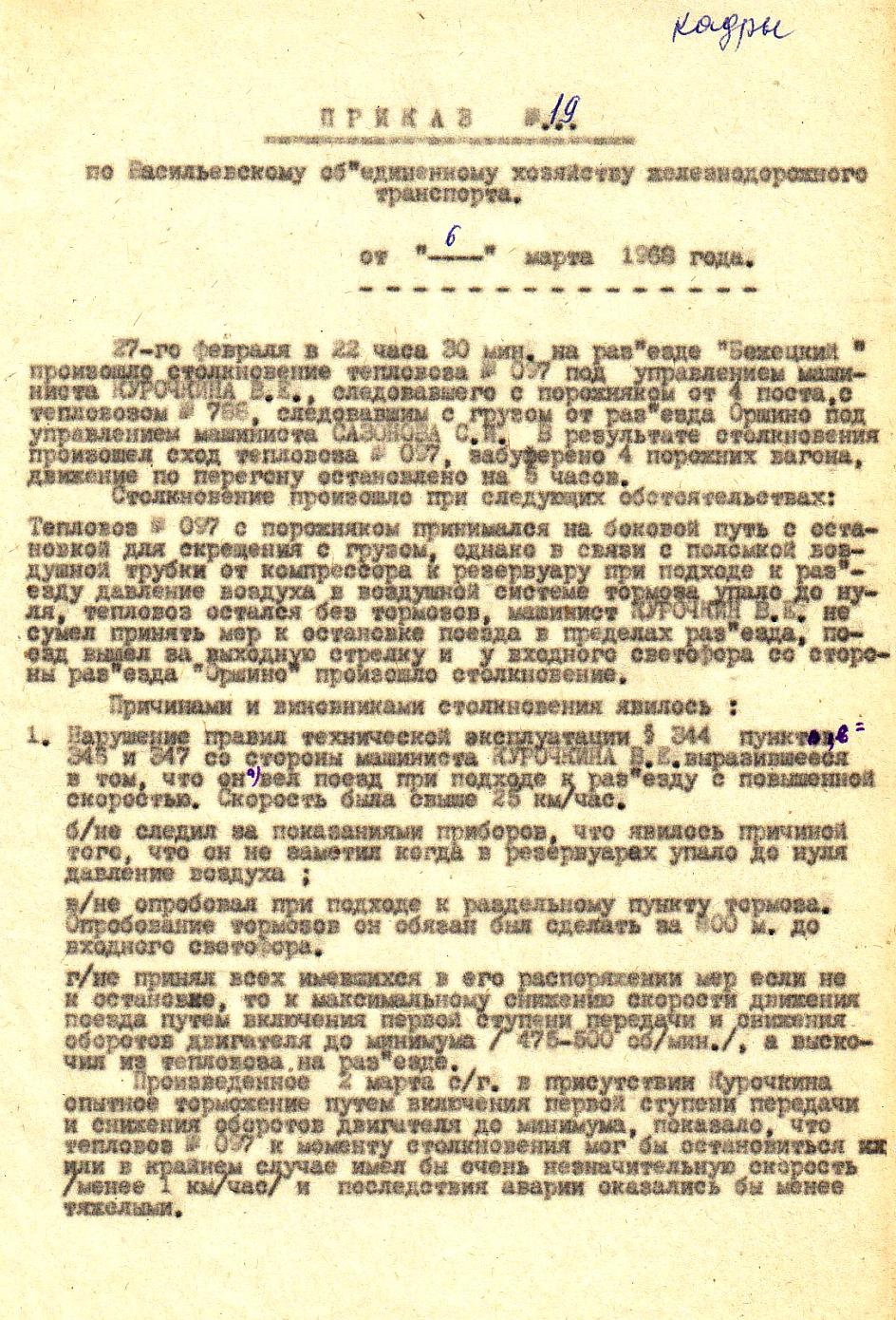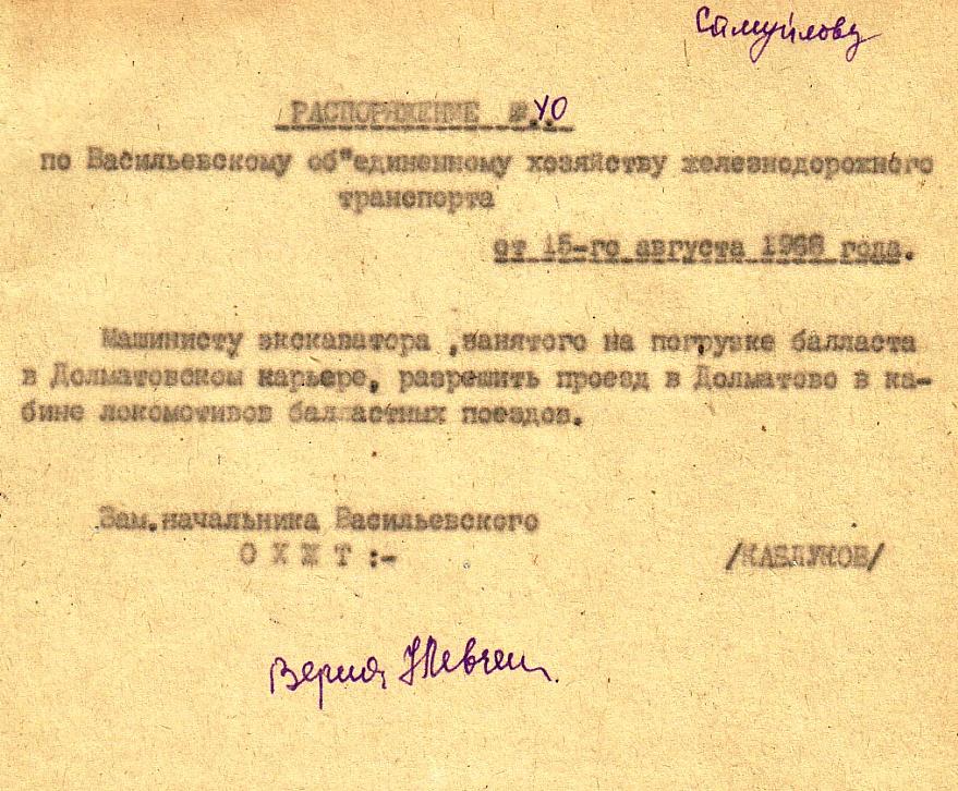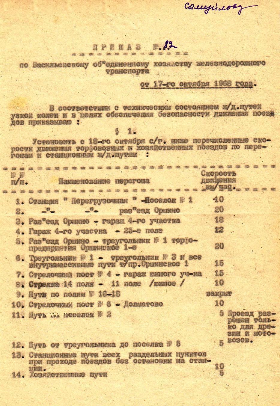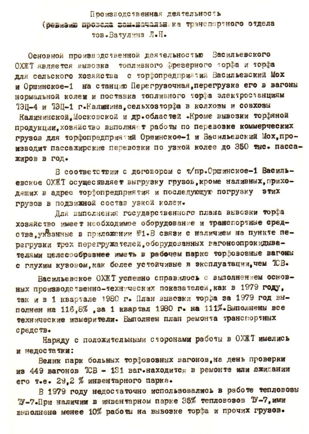 УЗКОКОЛЕЙНАЯ ЖЕЛЕЗНАЯ ДОРОГА ВАСИЛЬЕВСКОГО ПРЕДПРИЯТИЯ ПРОМЫШЛЕННОГО ЖЕЛЕЗНОДОРОЖНОГО ТРАНСПОРТА ДОКУМЕНТЫ РАЗНЫЕ (ЧАСТЬ 1)