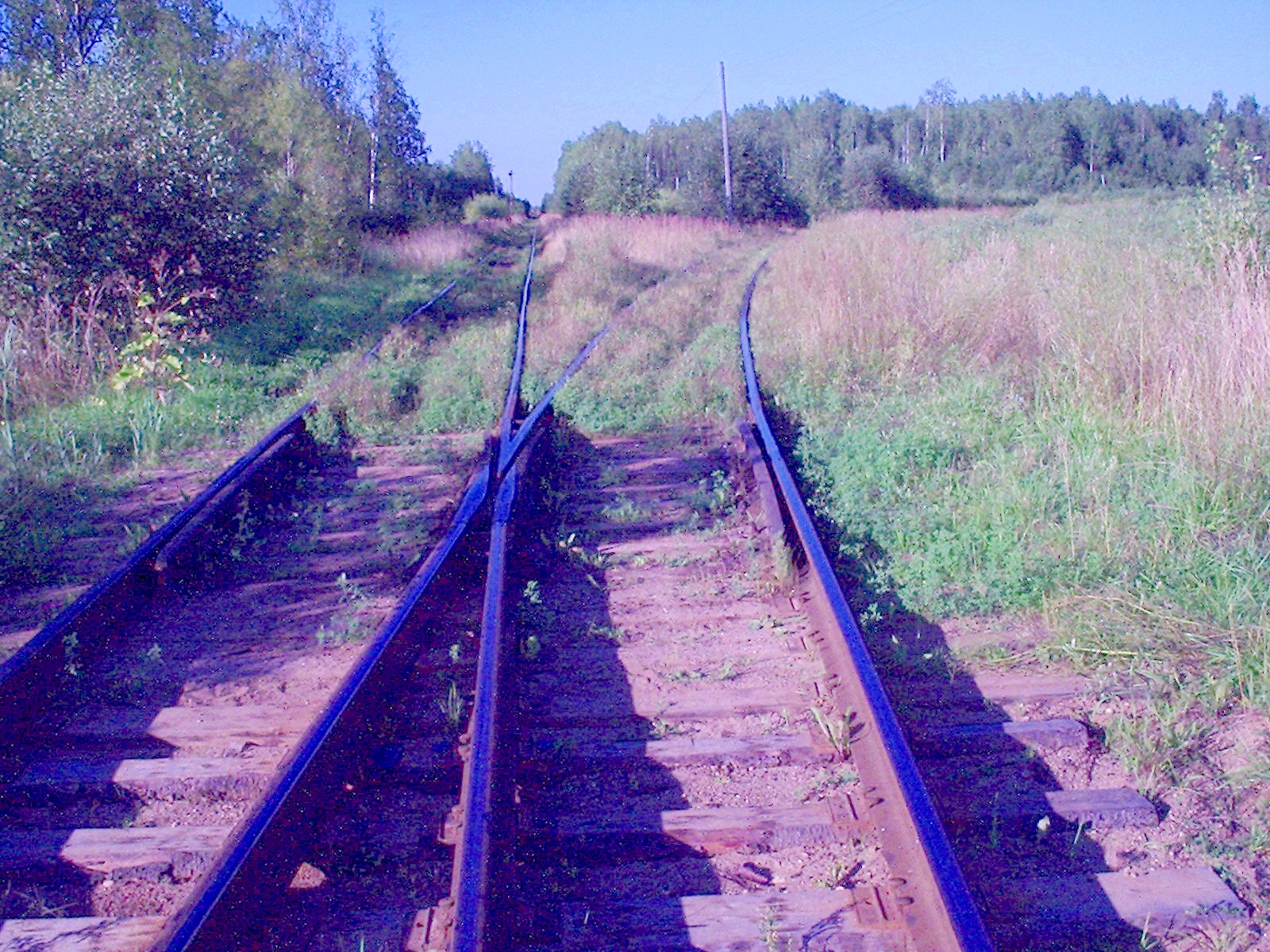Вид из той же точки в противоположном направлении. Слева — путь к станции Каменка, справа — путь к станции Стеклянка.