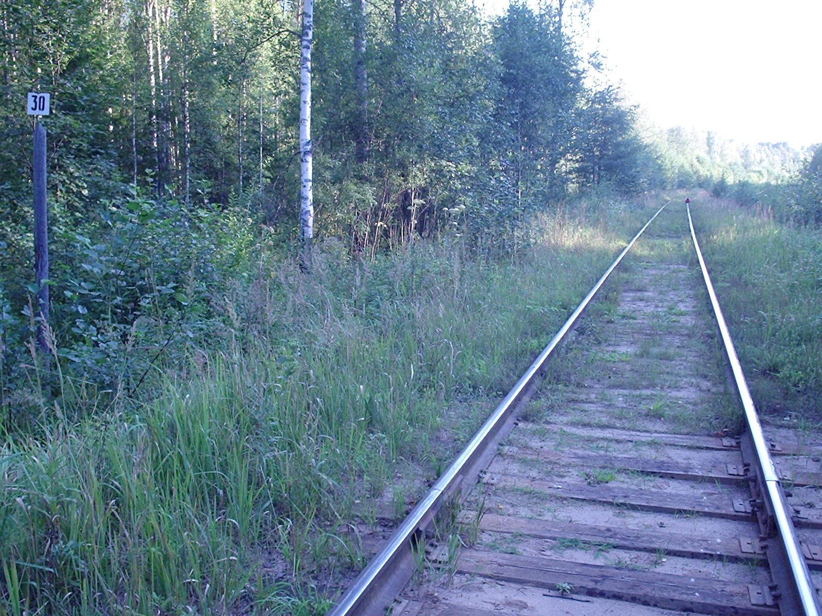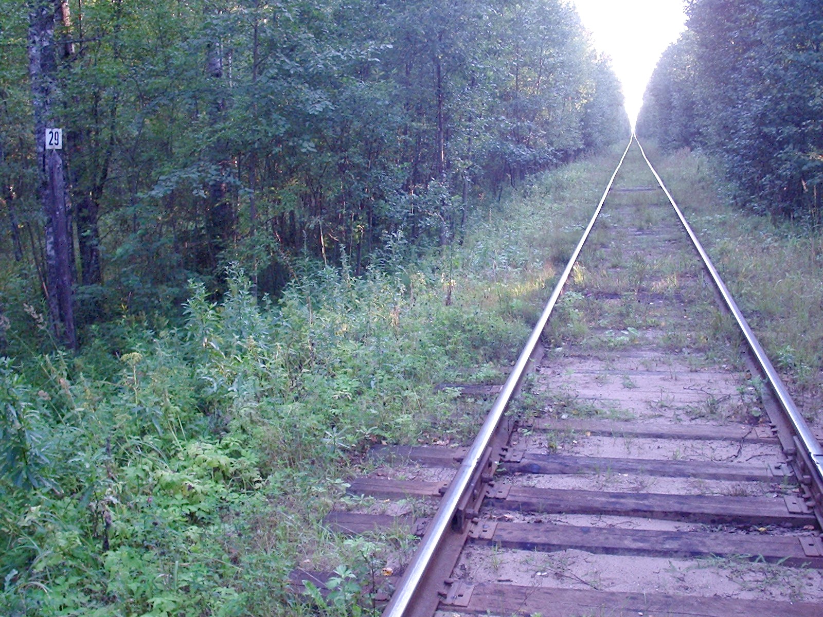 На 25-м километре когда-то находилась станция Восья. Слева — действующая линия,