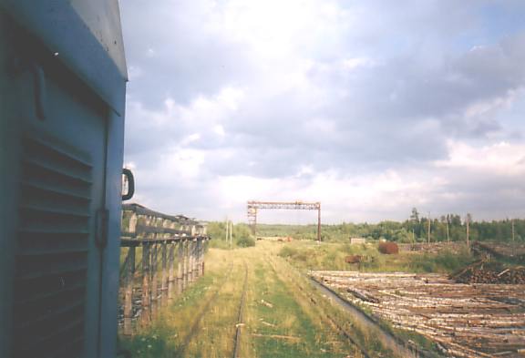 Манёвры на подъездном пути нижнего склада Карицкого лесопункта. Вид на восток.
