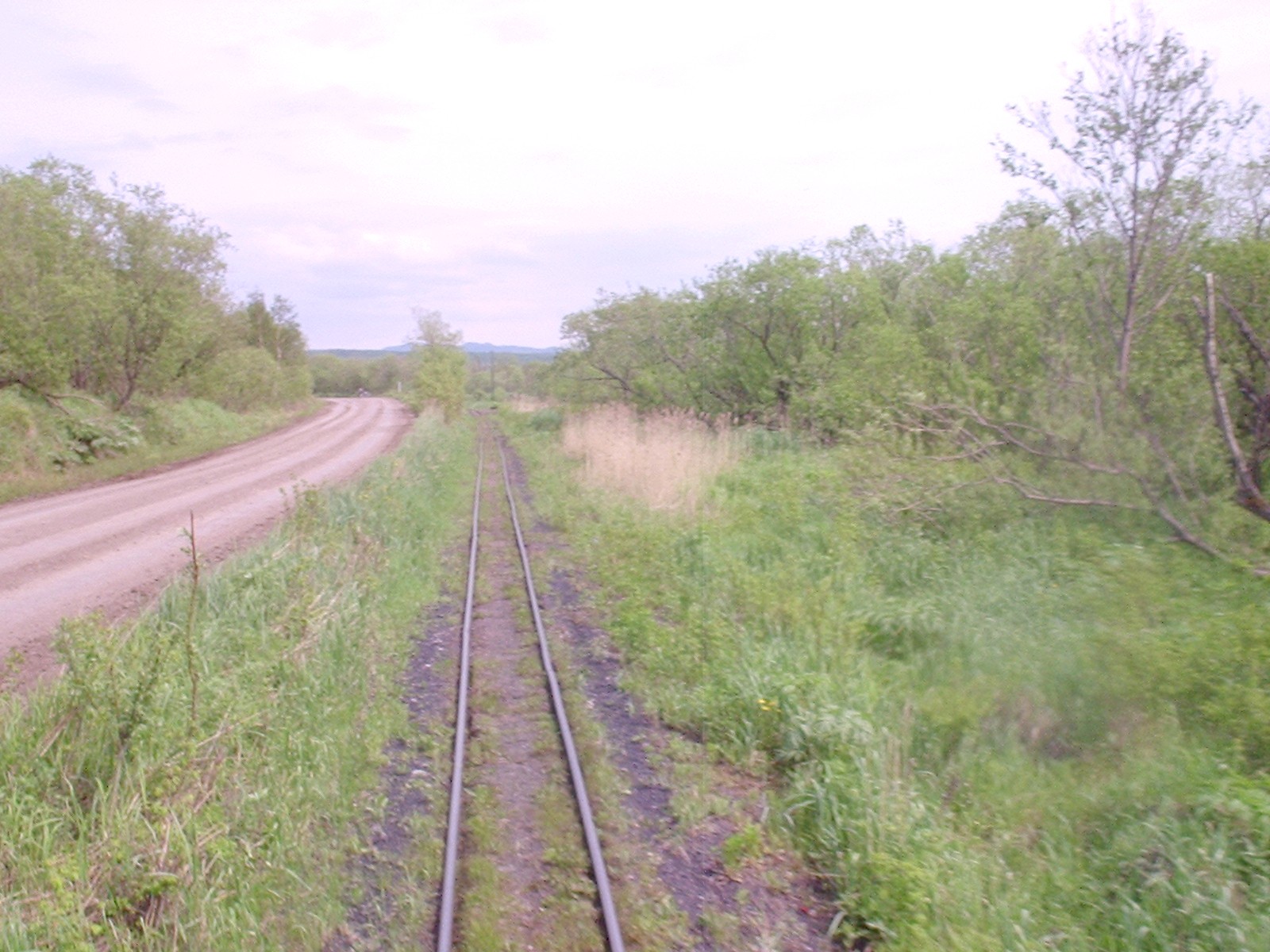 Сохранившийся фрагмент пути в городе Углегорске, на пересечении узкоколейной железной дороги