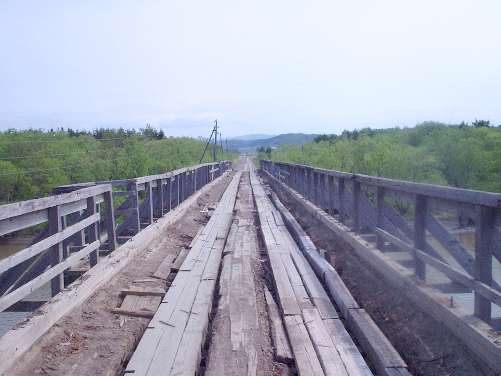Мост на автодороге, соединяющей точку поворота линии узкоколейной железной дороги с запада на север